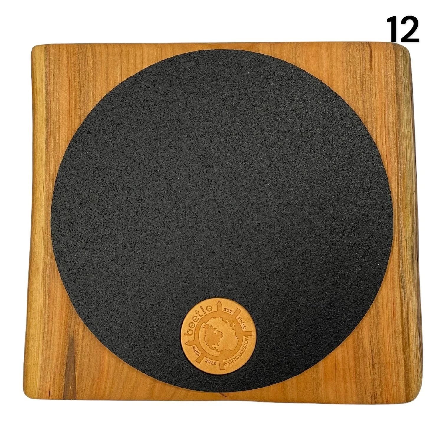 There are 14 individually unique Black Cherry Pads available in a variety of sizes and shapes. These are lovingly hand hewn and sanded chunks of beautiful Black Cherry wood that turns a beautiful fire red color when finished with natural oil. They will continue to darken over time. The reclaimed wood was procured from our local friends at Urban Lumber who had to shut down for a while to move and we can’t wait to see them back in action so we can turn more unique domestic trees in to percussion!
