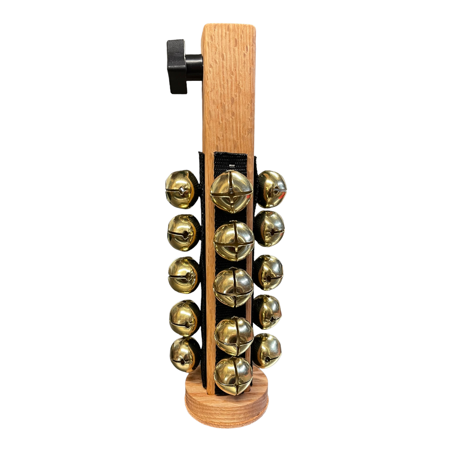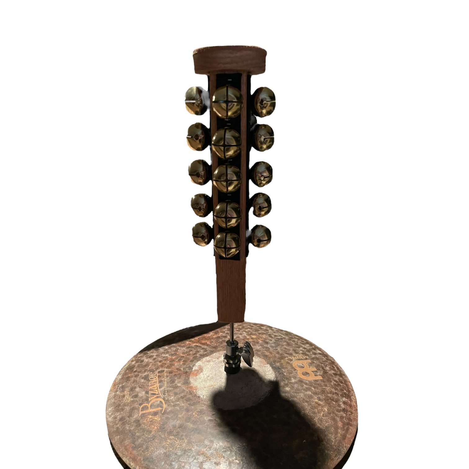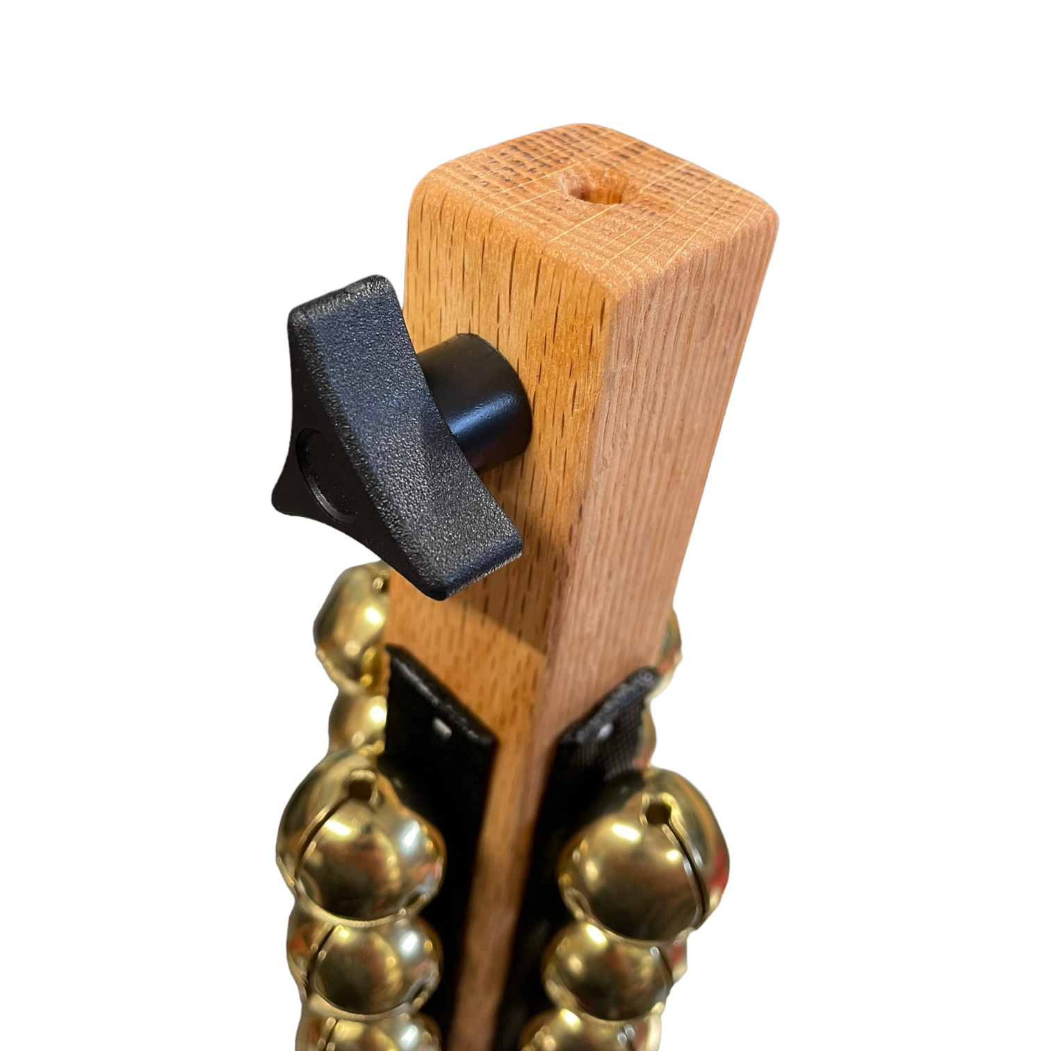 The Beetle Percussion Concert Sleigh Bells with Hi-hat mount consist of 20 steel E flat 1.25" bells from Iowa, hand riveted on high quality webbing from Portland, and mounted to a solid oak handle from KC. These bells, like its bigger hand turned brother, have the flat bottom that WE originated to facilitate silent operation in concert settings. We also added a hole in the handle and easy to use locking nut so you can mount these on your hi-hat. Remove the cymbals and add some felts for hands free sleigh bell operation in a pit setting etc.