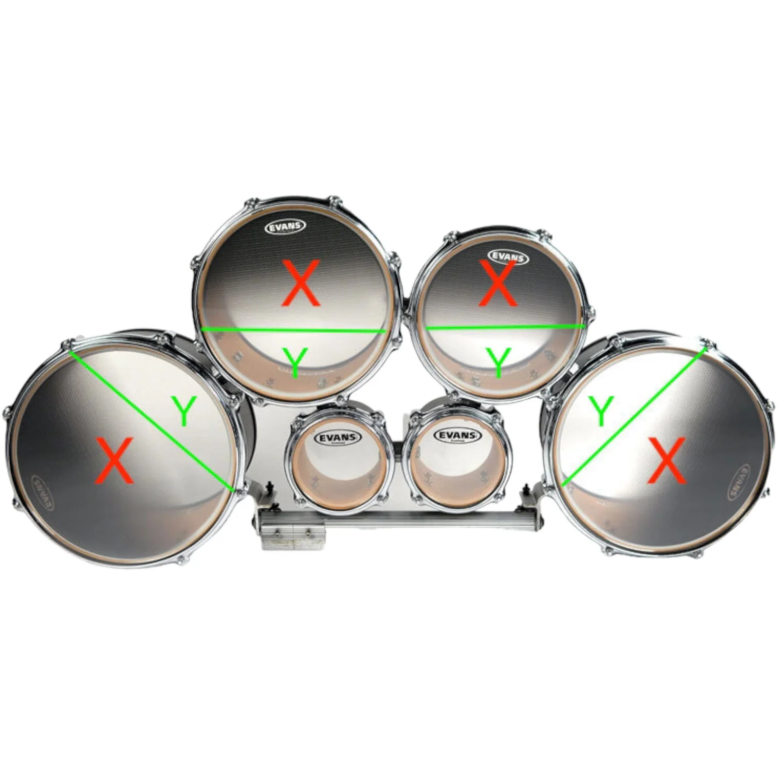 Zone based on 10” and 13.25” circles and a 6” middle circle - a universal playing area for most tonal drums