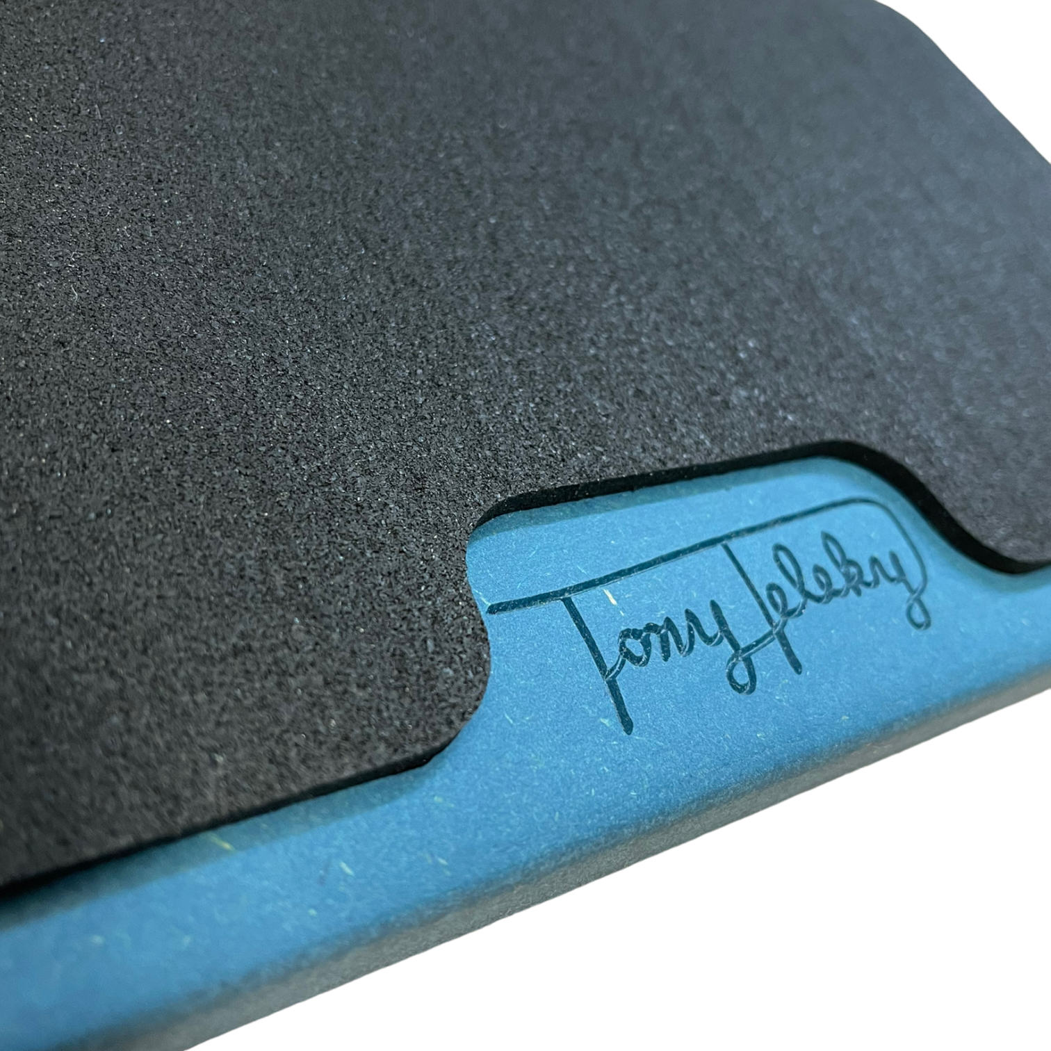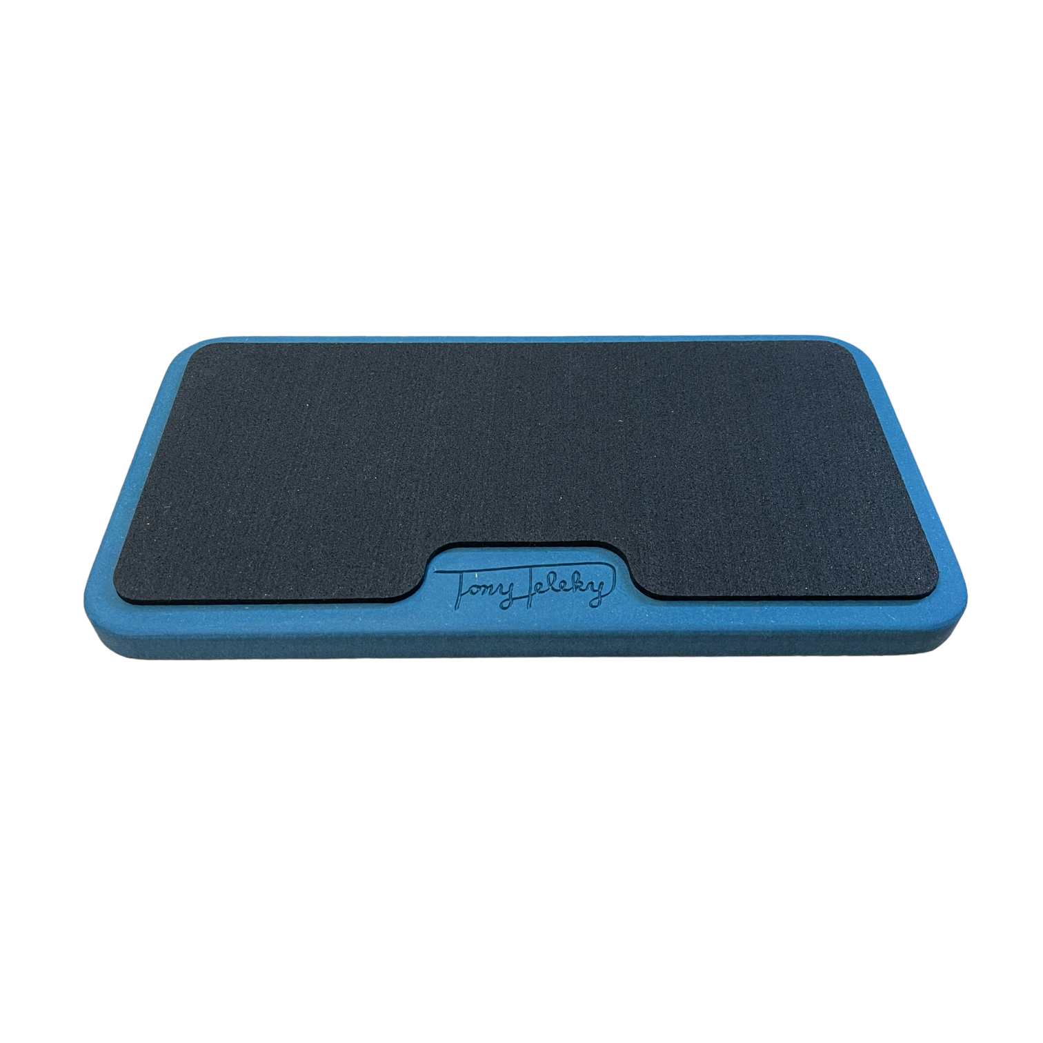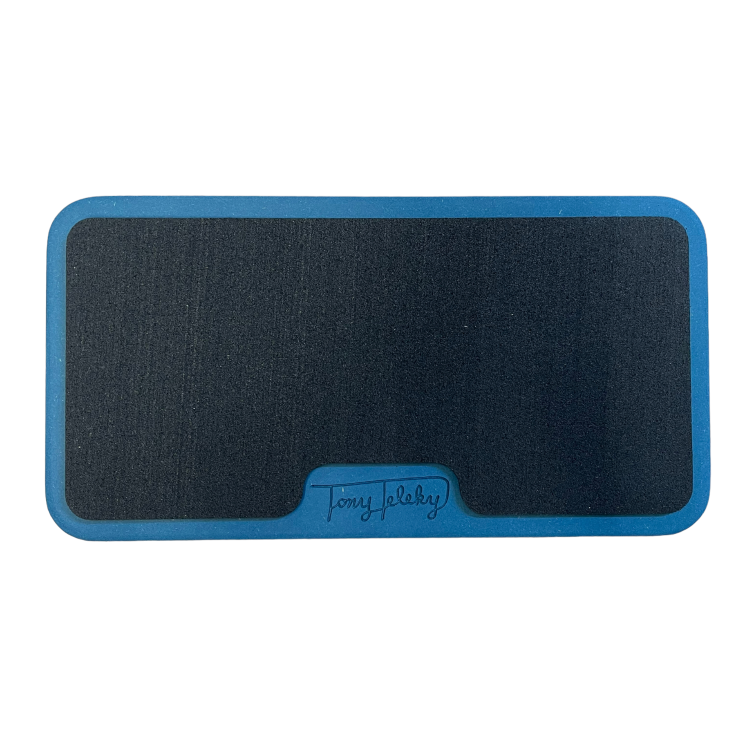 This pad was designed by Beetle Artist Tony Teleky (Center Snare Cadets 2017) because he wanted a bus pad for his age out DCI summer that was comfortable on the lap, durable, and had a louder side that could be heard above the other pads. The pad's design is intended to be set on the lap and avoid the annoying wobble common in round pads. The new 2.0 version is a true double sided pad with a fast articulate side and a soft bouncy side. The laminate gives the pad a more marching feel, and the valchromat is heavier, looks awesome, and represents Tonys’ alma mater, Duke.